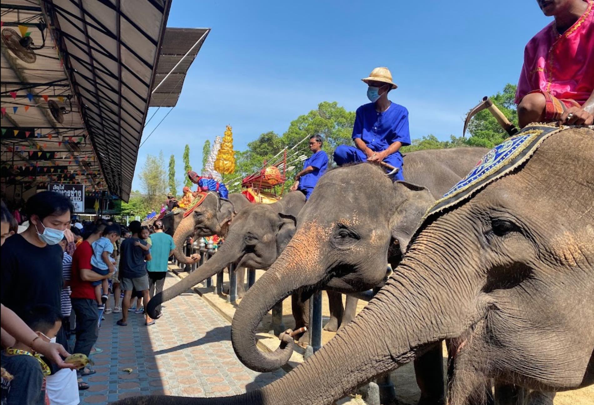 - 🌟 Samphran Elephant Show 🐘 Smart elephants show off various skills: Be amazed by the elephants' talented performances, including playing football, drawing pictures, and making cute gestures that show the intelligence of Thai elephants. Ride an elephant to see nature: Experience riding an elephant in a natural atmosphere. This is an additional activity that allows you to see the view from a different perspective and is another special memory. Join the activity of cooking for elephants: Learn about the lifestyle of elephant keepers and have fun preparing food for the elephants yourself.